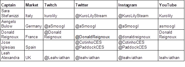 Di seguito la lista dei capitani delle cinque squadre Fordzilla europee e i riferimenti dei loro canali social.