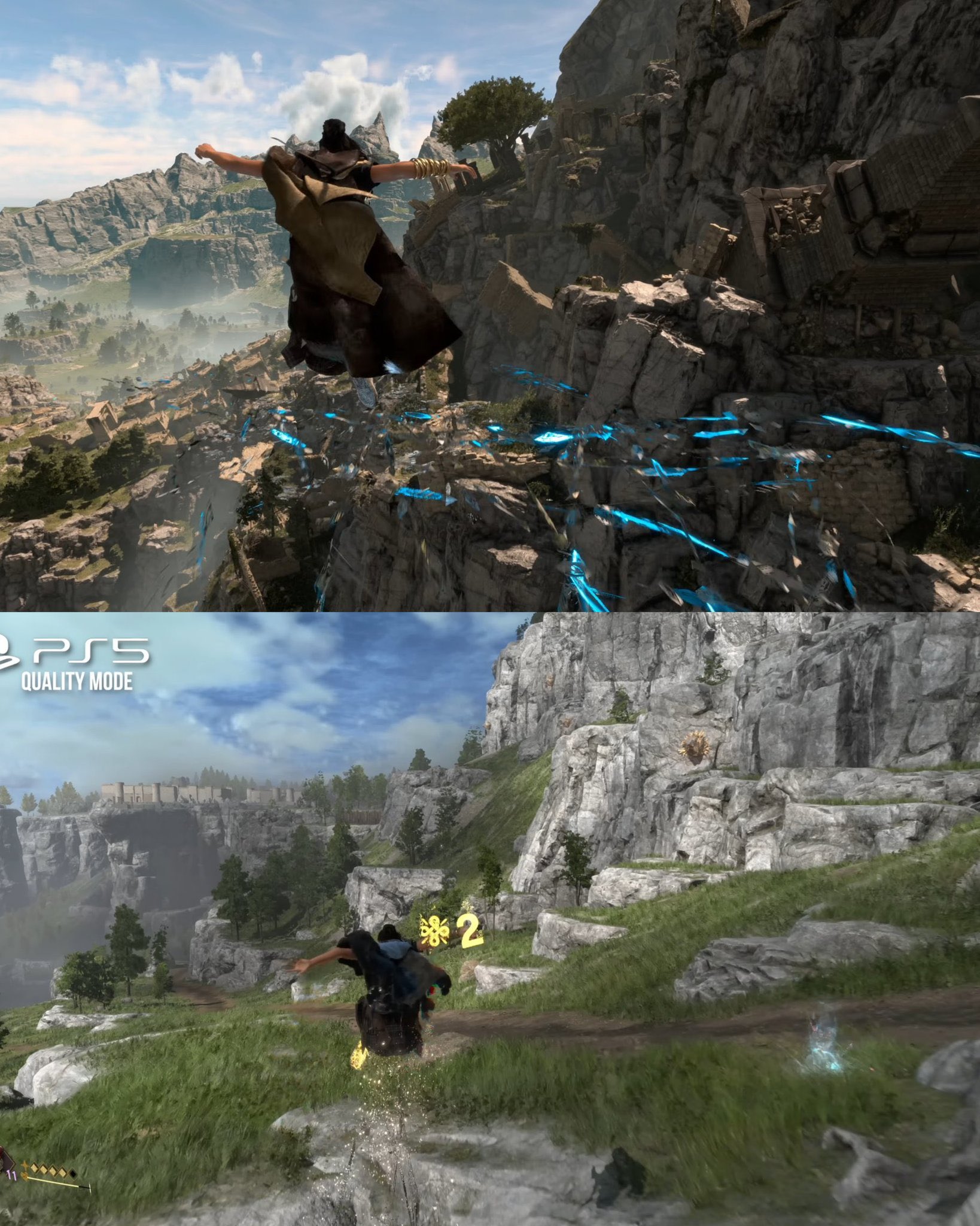 Dando quindi un’occhiata a queste immagini condivise da alcuni membri della community, è effettivamente possibile notare un comparto tecnico della versione finale di Forspoken meno sfavillante aspetto a quello messo in mostra nel reveal trailer del gioco.