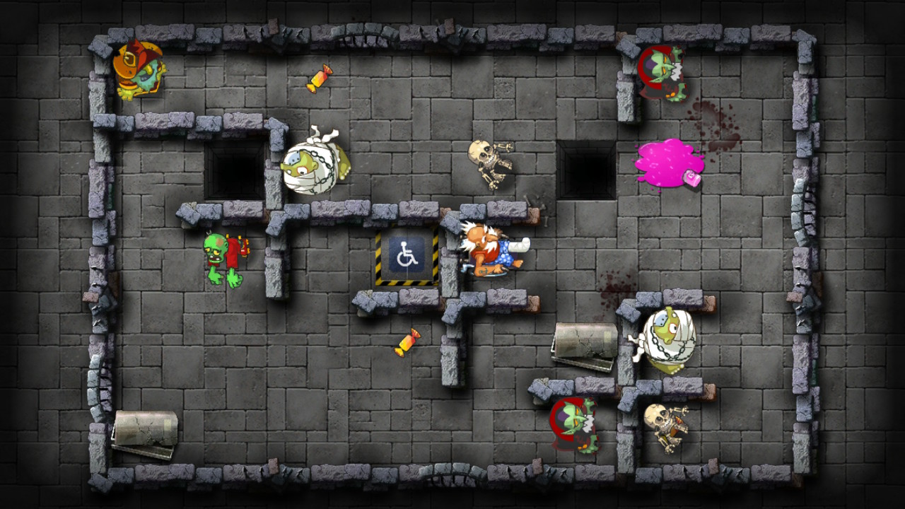 I giocatori guidano nonno Billy attraverso ben 120 livelli difficili da superare di modo che alla fine raggiunga sempre la sedia a rotelle che lo salverà. Logica, lungimiranza e sangue freddo sono i requisiti principali per giocare. Ma attenzione: il freno della sedia a rotelle del nonno non funziona. Ecco perché i giocatori devono pensare attentamente a come evitare tutti gli ostacoli, le trappole e gli altri pericoli, raccogliendo i deliziosi dolcetti di cui il vecchietto è così ghiotto. Dopo tutto, ha bisogno di loro per arrivare il più lontano possibile. Inoltre, gli zombie più pazzi si nascondono ovunque. Alcuni hanno caratteristiche particolari che il nonnetto potrebbe anche utilizzare di tanto in tanto.