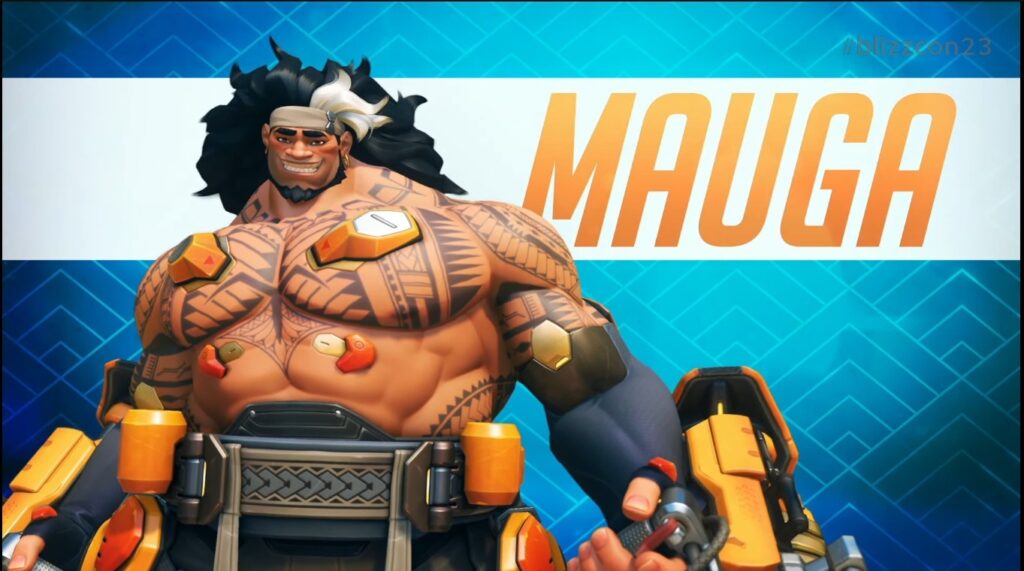 Presentato nel corso della Blizzcon 2023, Mauga si unirà al roster permanente di Overwatch 2. Il suo nome significa montagna e il corpo del personaggio samoano rispecchia questo richiamo. Le sue armi e i suoi poteri sono molto versatili e consentono di attaccare e di essere di supporto ai compagni grazie ad abilità curative.