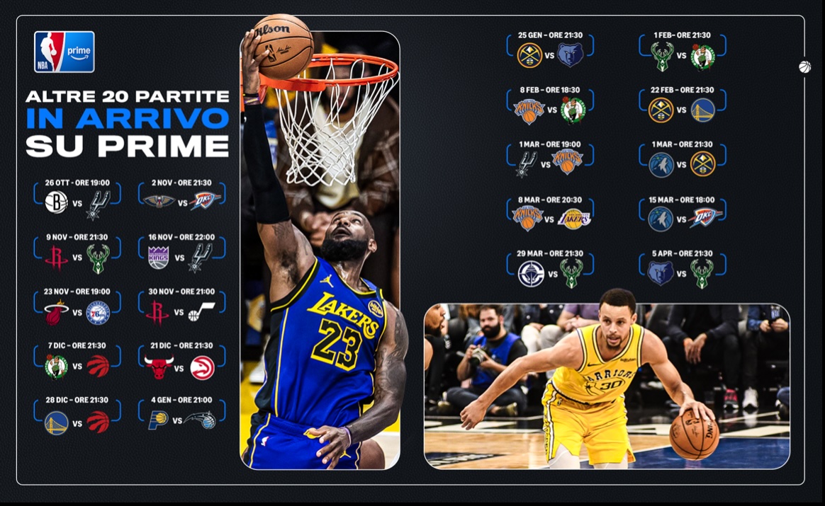 Queste 20 partite aggiuntive completano l’offerta NBA di Prime Video in Italia per la stagione 2025-26, che include: